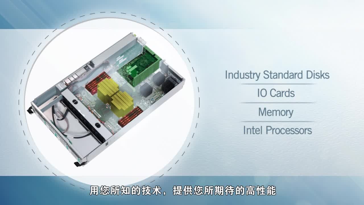 使用业界标准 x86 处理器、内存 DIMM、SSD 和 HDD。支持 Microsoft、Red Hat 和 VMware 提供的标准分发包装的操作系统。